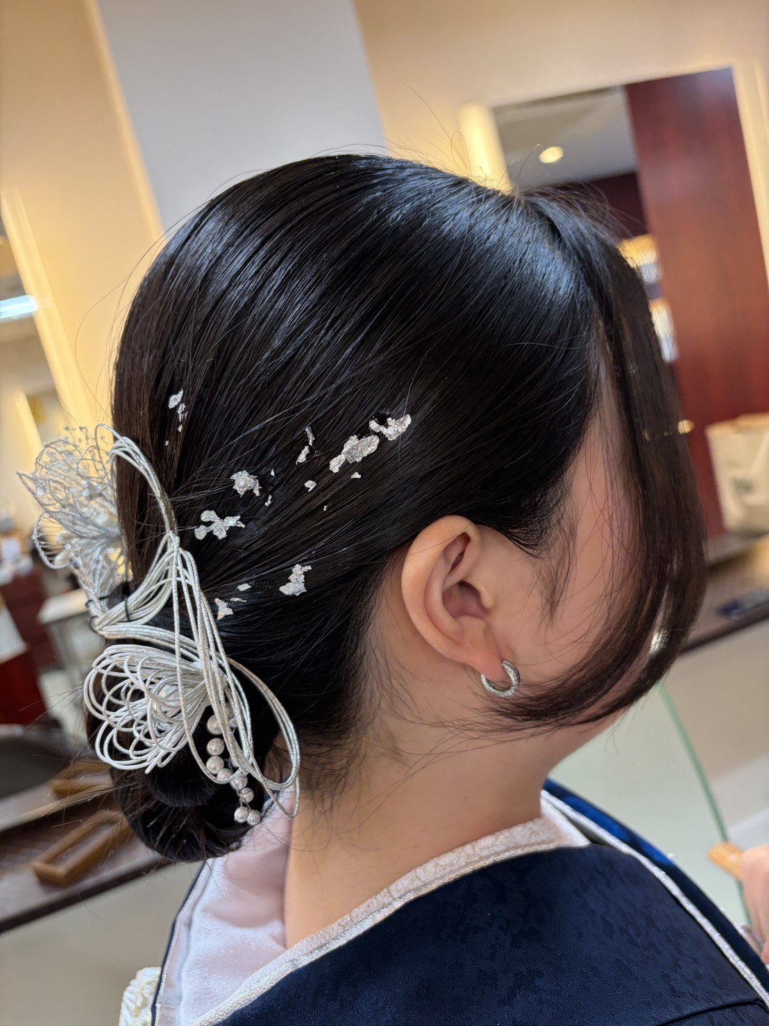 2026.01.30 Staff Blog 2026 成人式 堀切 ⑤ 濃紺の着物に他の飾りや小物はすべてシルバーでまとまっています。 キレイなシルバーの帯揚げはフリルに。 #SHAPE GARDENシェイプガーデン#ドライカット#イルミナカラー#ベル・ジュバンス#ヘッドスパ#口コミ#ヘナ#コタ#着付け#成人式#卒業式ヘア#髪質改善#ホリスティックヘアカット#ハイライトを活かしたボブ#強髪#くせ毛#悩み#コタクチュール#七五三