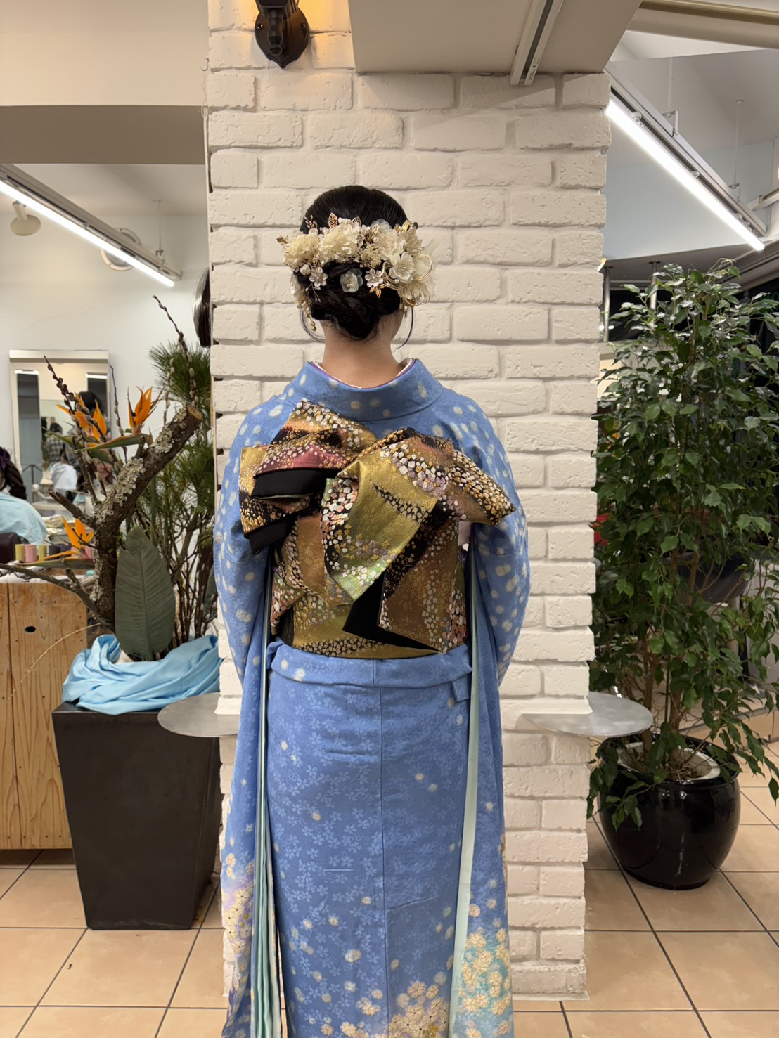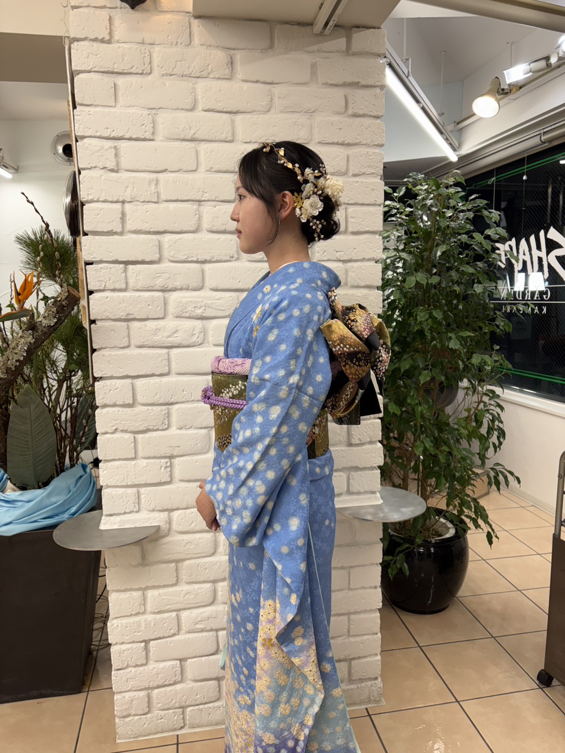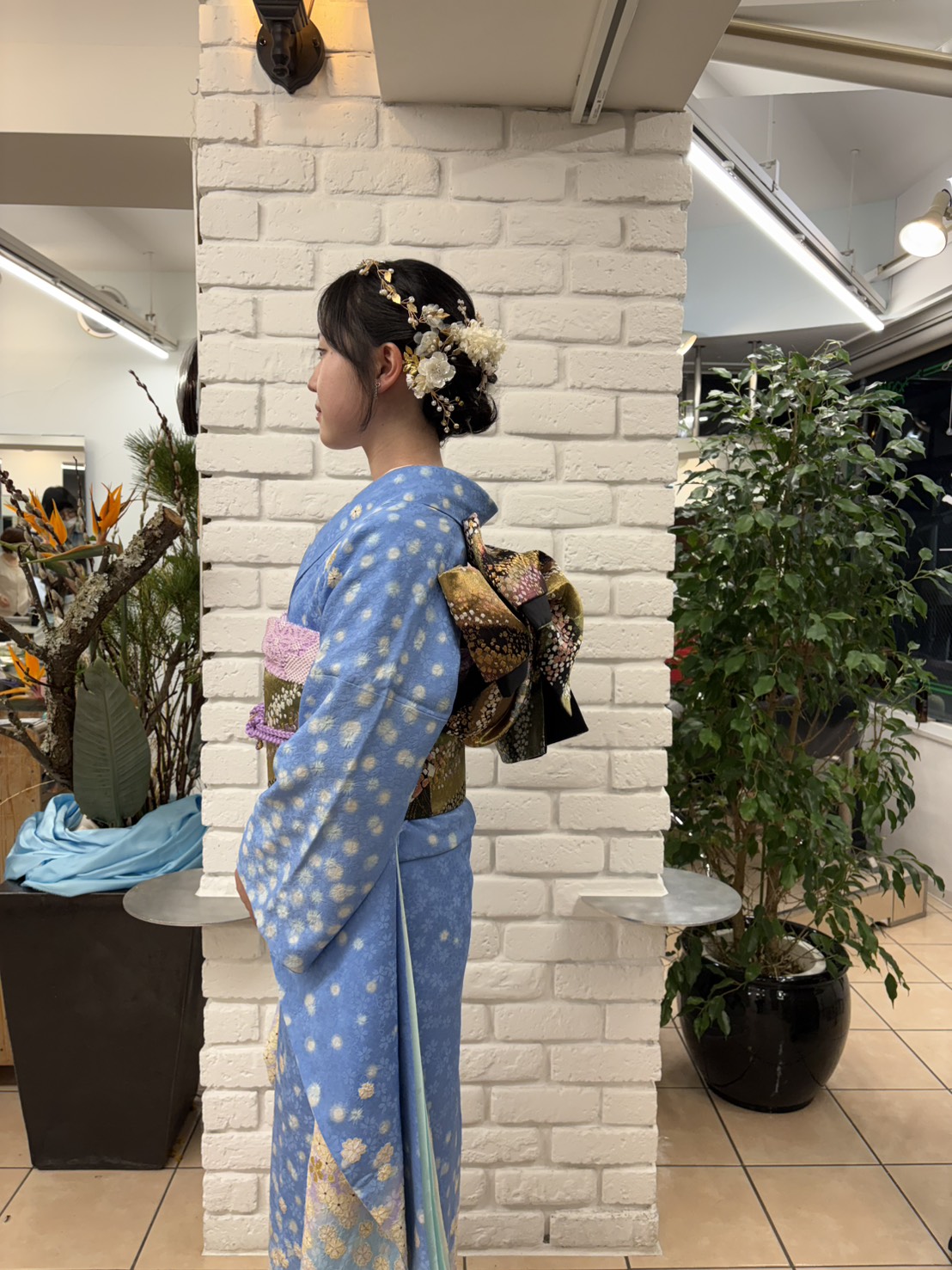 2026.02.08 Staff Blog 2026 成人式 亀有 ⑤ 水色の着物のお嬢様。 淡い色の着物と帯揚げに金と黒の帯が映えますね。 #SHAPE GARDENシェイプガーデン#ドライカット#イルミナカラー#ベル・ジュバンス#ヘッドスパ#口コミ#ヘナ#コタ#着付け#成人式#卒業式ヘア#髪質改善#ホリスティックヘアカット#ハイライトを活かしたボブ#強髪#くせ毛#悩み#コタクチュール#七五三