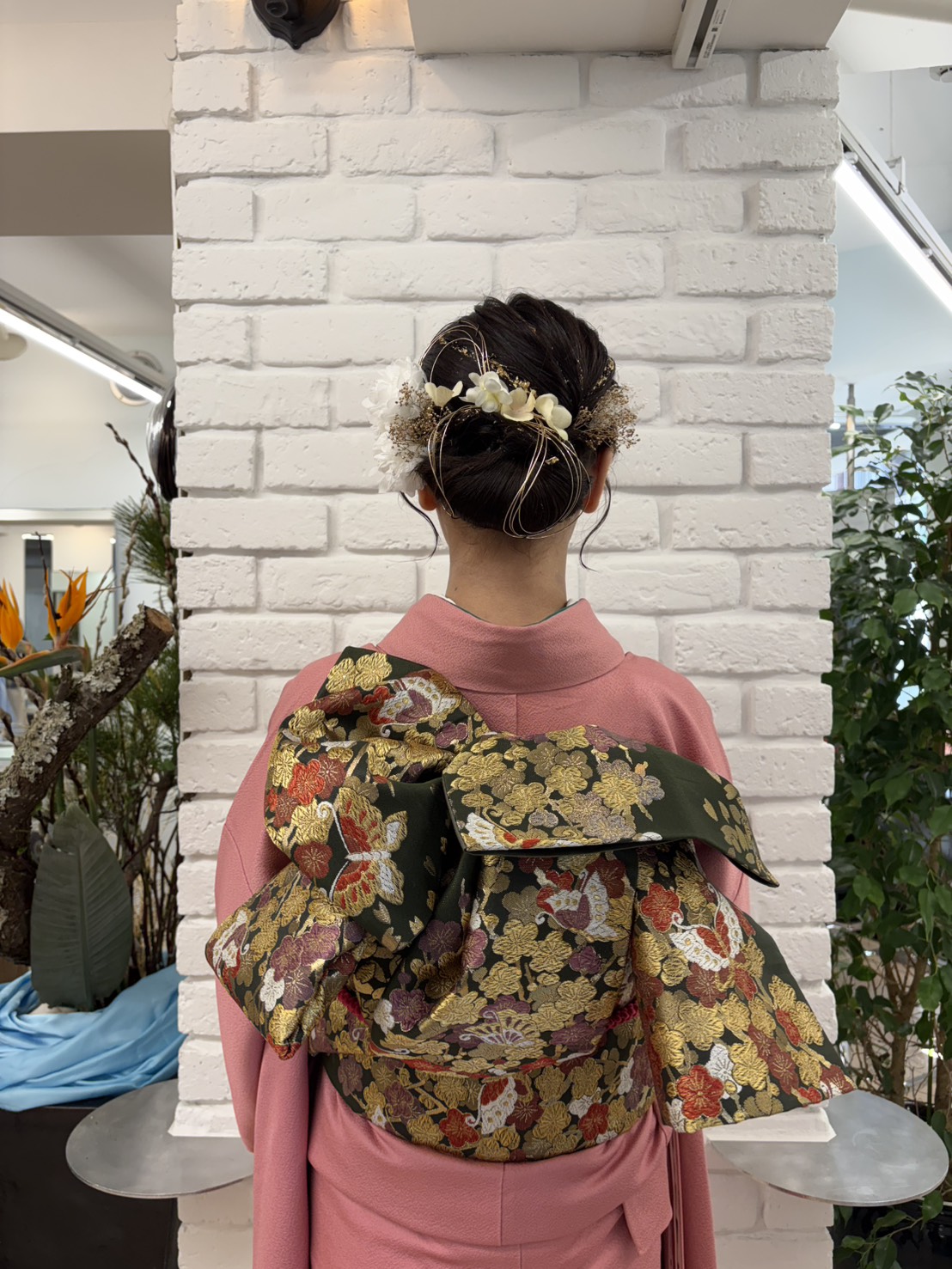 2026.02.14 Staff Blog 2026 成人式 亀有 ⑦ シニョンにまとめたスタイルに金粉と金の水引がよりクラシカルな雰囲気に。 帯の色にもお似合いです。 ヘアー担当 石井 #SHAPE GARDENシェイプガーデン#ドライカット#イルミナカラー#ベル・ジュバンス#ヘッドスパ#口コミ#ヘナ#コタ#着付け#成人式#卒業式ヘア#髪質改善#ホリスティックヘアカット#ハイライトを活かしたボブ#強髪#くせ毛#悩み#コタクチュール#七五三