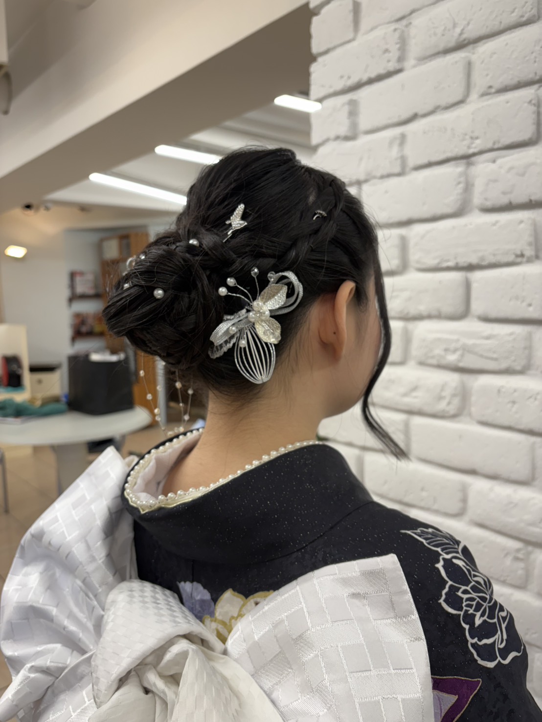 2026.02.15 Staff Blog 2026 成人式 亀有 ⑧ 襟元のパールに合わせて髪飾りにもパールを使いました。 黒地の着物にホワイトシルバーの帯はとてもよく映えます。 ヘアー担当 岩間 #SHAPE GARDENシェイプガーデン#ドライカット#イルミナカラー#ベル・ジュバンス#ヘッドスパ#口コミ#ヘナ#コタ#着付け#成人式#卒業式ヘア#髪質改善#ホリスティックヘアカット#ハイライトを活かしたボブ#強髪#くせ毛#悩み#コタクチュール#七五三